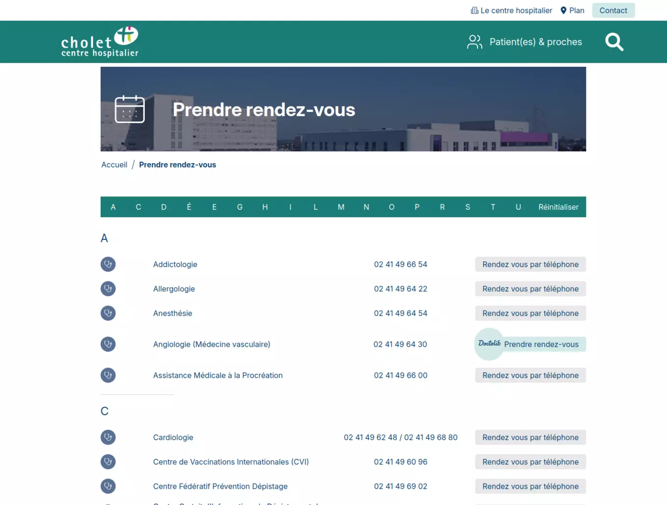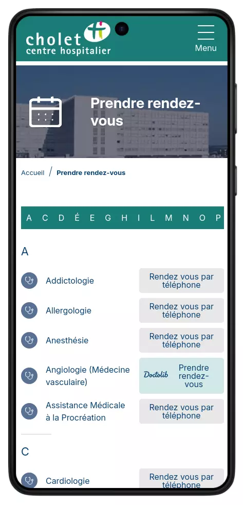 Site internet du Centre Hospitalier de Cholet