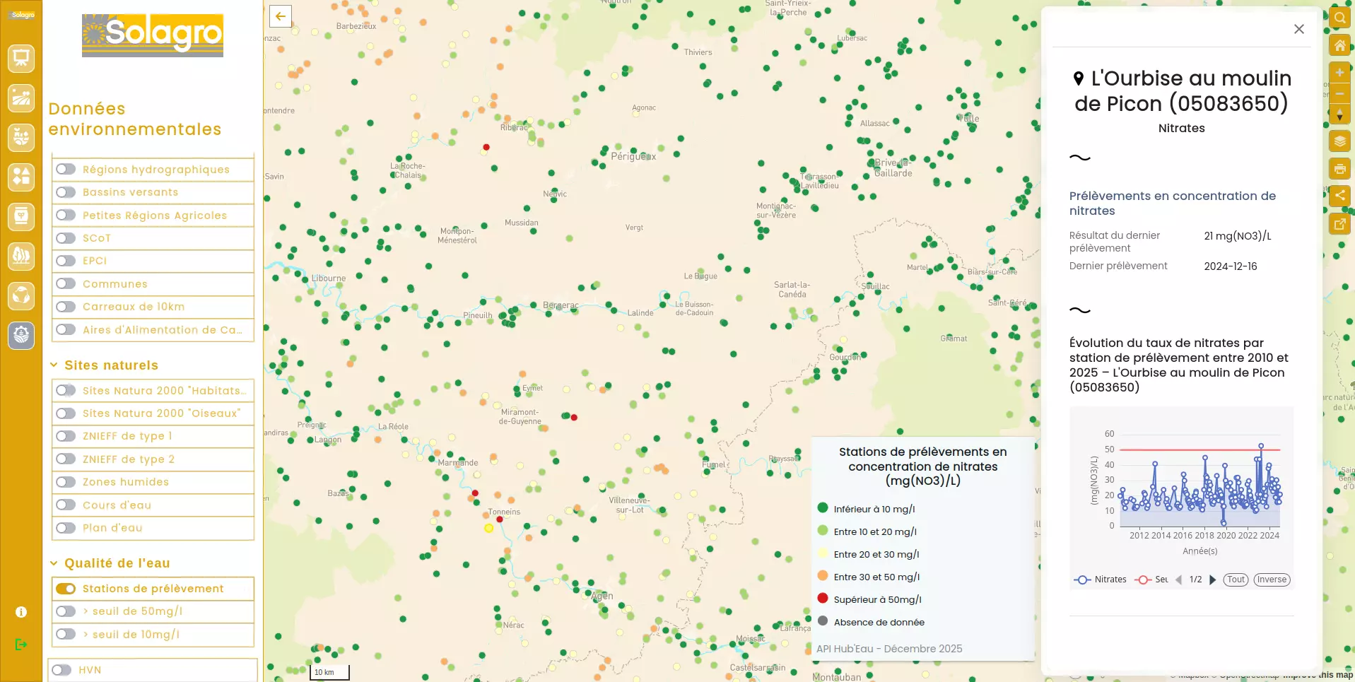 Filtrer les données par territoire ou zonage environnemental.